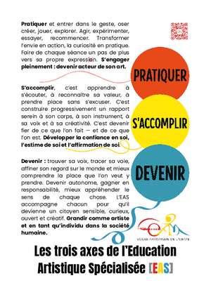 Nos parcours visent à développer des compétences techniques solides, tout en encourageant l’expression personnelle et la créativité. A travers les pratiques collectives, les élèves partagent leur art, leur vision, leurs idées. En musique, l'ajout de la formation musicale dans une démarche ludique mais ambitieuse offre aux élèves l'opportunité de maîtriser un véritable langage, support de leurs projets et idées ainsi que de leur construction collective.